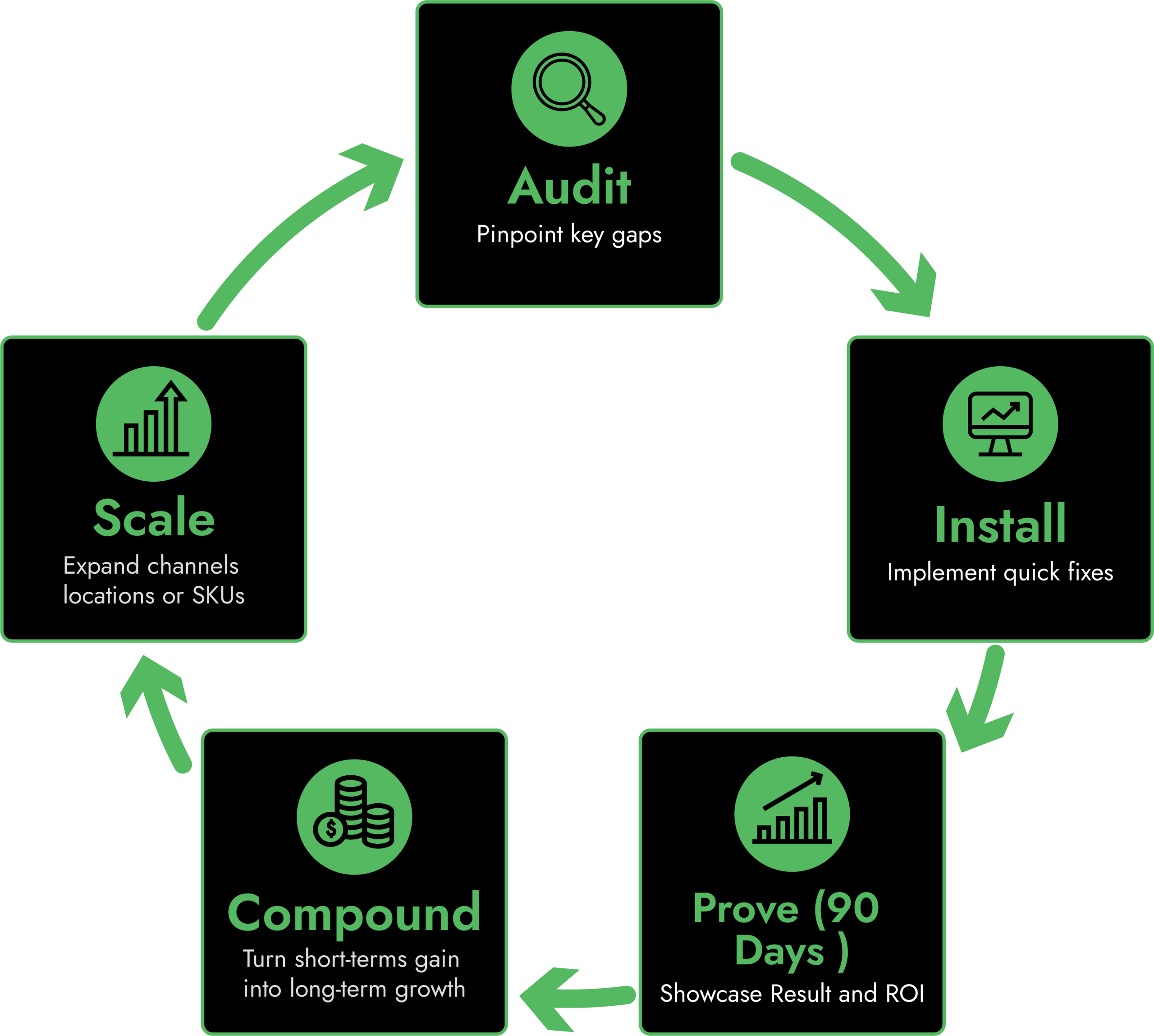 Hit all three of these milestones within 90 days, or we keep working at no cost until we do.